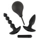 Набор секс-игрушек. Включает в себя: классическую анальную пробку (длина - 15 см, диаметр - 3,5 см), анальную пробку с шариками (длина - 18 см, диаметр - 3 см), анальный гигиенический душ (длина наконечника - 6 см) и виброэлемент с 10 различными вариантами работы. Все изделия выполнены из шелковистого силикона высокого качества.Основные характеристики Анальные пробки Black Velvets Anal Kit Черные