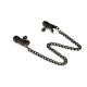 Зажимы на цепочке для сосков. Оснащены силиконовыми накладками, чтобы не травмировать нежную кожу, но при этом позволяют довольно сильно сжимать соски благодаря винтам. Общая длина (зажимы + цепочка): 43 см.