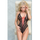 Эротичное боди черного цвета из эластичного кружева, на тонких бретелях, с полностью открытой спиной и изящной шнуровкой красной ленточкой спереди. Модель имеет вырезы по бокам и пикатный разрез в интимном месте.
