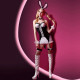 Шикарный костюм зайки с кружевным мини-платьем и чулками отличается большим количеством аксессуаров и нарядностью. Платье с пышной юбкой и выраженным лифом отделано кружевом и кокетливой шнуровкой — такая конструкция красиво подчеркивает грудь и талию. Сзади предусмотрен пикантный разрез, который приоткрывает попку и совершенно не помешает продолжить свидание интимной близостью.