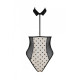 Эротическое боди Passion TRISHA BODY сшито из тонкой мягкой сетки комбинированных цветов — бежевого в горошек на животике и черного по бокам. Боди закрывает тело до груди. Симпатичная деталь — рубашечный воротник на тонком регулируемом стрепе, идущем от верхнего края боди между грудью к шее. Спинку боди украшает корсетная шнуровка. С ее помощью можно без труда отрегулировать белье под особенности фигуры. Обнаженные ягодицы добавляют интриги и возбуждения и без того разгоряченному шикарным видом телу. Будьте уверены, ваш партнер высоко оценит такой наряд для интимного свидания.