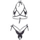 Этот шикарный комплект вовсе не о скромности. Он создан соблазнять, манить и разрешать. Сшитый из эластичных ремешков и украшенный филигранно выполненными бабочками, эротический комплект с открытой чашкой Leg Avenue Open cup bra and pearl panty не оставит равнодушным ни вас, ни вашего партнера. Привычная чашка груди в этом комплекте состоит всего из трех эластичных стреп, обнажая грудь. Две симпатичные бабочки слегка прикрывают соски. Сзади стрепы можно завязать, тем самым отрегулировав лиф по своей фигуре. Крошечные стринги с завязками по бокам, спереди украшены бабочкой, которая лишь частично прикрывает низ живота. Нежные места сексуально украшает нитка жемчуга. Эта деталь смотрится невероятно эротично и маняще.