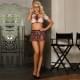 В комплект входят: топ, юбка, стринги, галстук, очки.