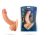 Фаллоимитатор телесного цвета с реалистичным внешним видом. Обладает гладкой головкой, изогнутым стволом с венозной сеткой и большой мошонкой. В основании расположена присоска для надежной фиксации на гладкой поверхности. Сделан из современного материала ПВХ.