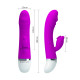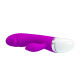 Силиконовый вибратор со стимулирующим отростком для клитора. Изготовлен из высококачественного материала с бархатистой поверхностью. Имеет гладкий ствол, загнутую головку и складки для стимуляции точки "G". Игрушка обладает 30 вариантами вибрации, которая регулируется одной кнопкой на основании.