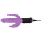 Hi-tech вибратор 3 в одном: вагинальный вибратор, стимулятор клитора и анальный стимулятор. Выполнен в лиловом цвете из высококачественных материалов, безопасных для здоровья. Вагинальный вибратор имеет прямой рельефный ствол и зауженную головку, стимулятор клитора выполнен в форме кролика с ушками, анальный вибратор изготовлен в форме 7-ми стимулирующих бусин разного диаметра. Кнопки на основании регулируют режимы мощной вибрации. Длина - 22,2 см, диаметр - 2,7-3,3 см.