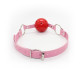Кляп красный шарик, розовые ремешки, диаметр 4.5 см.