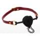 Тонкий красный ремешок из качественной искусственной кожи придерживает силиконовую заглушку, которая имеет форму, отдаленно напоминающую силуэт рыхлых губок.