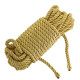 Веревка выполнена из смеси нейлоновых и хлопковых волокон. Такой состав гарантирует надежность при любой технике связывания: узлы будут держаться крепко и не развяжутся сами по себе. При этом поверхность веревки достаточно гладкая и мягкая — она не вызывает раздражения кожи. Для дополнительного эффекта поверхность пропитана конопляным маслом, которое к тому же придает веревке легкий аромат и создает на шибари-сессии расслабленную атмосферу.