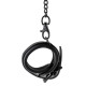 Стильные наручники. Полностью регулируется с помощью простой пряжки в виде ремня. Удерживается черной цепочкой, к которой можно легко прикрепить веревку, крючки или утяжелители. Эти прочные манжеты изготовлены из черной фурнитуры без никеля и обиты мягким, но прочным неопреном для сексуальной и комфортной игры.