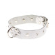 Белый однослойный ошейник ручной работы из мягкой итальянской кожи самого высокого качества. Не жмёт и не натирает, его можно носить длительное время не опасаясь никакого дискомфорта. Аккуратная застежка даст возможность точно настроить размер в соответствии с диаметром шеи. Спереди атрибут снабжён полукольцом, к которому при желании можно прикрепить поводок.