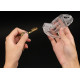 Вставьте мошонку в кольцо и пропустите кончик кольца в открытое пространство внизу крышки.