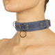 Голубой ошейник LOVECRAFT с полукольцами и кольцом на центральной части, для крепления поводка для ошейника, карабинов или веревки для шибари: