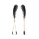 Набор выполнен из искусственной кожи и фурнитуры черного и цвета розового золота. Это непривычное сочетание добавляет великолепия каждому аксессуару. Мягкие широкие наручники и поножи отлично фиксируют запястья и щиколотки, при этом не травмируя их. Цепочки с карабинами позволяют соединить между собой аксессуары или присоединить их к другим предметам — кровати, крестовине и т. д. Тонкий стильный ошейник смотрится очень привлекательно на нежной шее. Длинный поводок-цепь крепится к колечку на ошейнике. Металлические зажимы на соски защищены мягкими наконечниками, чтобы не повредить нежную кожу груди. Силу сжатия можно регулировать ползунком. Украшены зажимы черными перышками. Длинная шлепалка и мягкая короткая щекоталка могут взаимоисключать друг друга, а могут работать в паре: поочередное нежное поглаживание и ощутимое шлепанье прикованного партнера могут вызвать бурю возбуждения. Закройте любимому глаза широкой атласной лентой — и смело проводите чувственные эксперименты над его телом, что жаждет ласк и наказаний. Добавьте к сладкой пытке капельки воска из свечи, которая тает при минимальных температурах, и вы получите невероятный набор, экспериментировать с которым можно практически бесконечно.