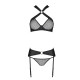 Описание Набор сетчатый: бюстгальтер с халтером, трусики и пояс для чулок Passion Amanda Set black S/M