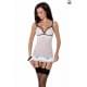 Нежное кружево, игривые оборки, белоснежный цвет — все это выглядело бы исключительно невинно, если бы не черная портупея на груди, которая сразу делает образ сексуальным и возбуждающе манящим. Бретели регулируются по высоте для идеальной посадке, а на сорочке есть регулируемые подвязки для крепления чулок, так что вы сможете добавить в наряд свою изюминку. В комплекте — миниатюрные стриги.