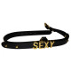 Чокер із написом SEXY від UPKO з італійської шкіри, чорний із золотою фурнітурою
