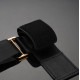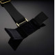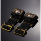 Надійні чорні ремені для бондажу із золотистою фурнітурою прості у використанні, оскільки їхню довжину та ступінь натягу можна регулювати.