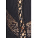 Мереживо на грудях робить бюст виразнішим, а на талії допомагає зробити візуально тоншим. Баска по нижньому канту, у поєднанні зі шнурками та мереживними трусиками приковує увагу до крутих стегон і наповнює думки пікантними сексуальними фантазіями.