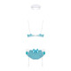 Спокусливий костюм медсестри виконаний з еластичного, приємного до тіла матеріалу небесно-блакитного кольору та білої сіточки. М’які чашки на кісточках ліфа не додають об`єму, але спокусливо підкреслюють груди. Сіточка відкриває приголомшливий вигляд на м’які форми грудей, а шнурівка між чашками нагадує, що цю частину одягу можна скоріше зняти. Бретелі бюстгальтера регулюються, позаду є багаторівнева застібка, щоб білизна села ідеальна. Трусики із заниженою талією красиво підкреслюють стегна, а шнурівка спереду та кокетливий бантик ззаду додають шарму та інтриги. Еластичні лямки для панчіх знімні та регульовані. Завершує образ матер’яно-рюшева пов’язка на голову.