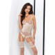 Корсет жіночий Passion LOTUS CORSET cream прикрашений напівпрозорими вставками золотистого кольору з актуальним квітковим принтом. Крім того, корсет прикрашають милі бантики, що символізують ніжність та грайливість. Жіночий корсет Passion LOTUS CORSET має шнурівку на спинці, яка і прикрашає виріб, і дає можливість затягнути тугіше, або навпаки розширити корсет, підігнавши на свій смак і розмір. Креативні стрінги чудово тягнуться, гарно сидять.