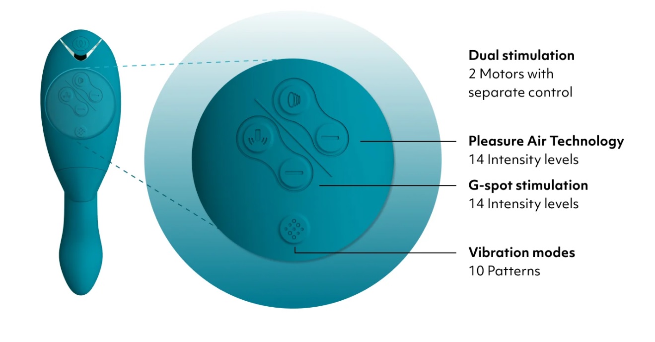 DUO 2 — це унікальна секс-іграшка преміум-класу — кліторальний стимулятор Pleasure Air і потужний подвійний вібратор G-Spot в поєднанні створюють розширений змішаний оргазм.