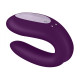 Смарт-вібратор для пар Satisfyer Double Joy — простий у використанні вібратор для пар. У цій моделі виробник, відповідно до відгуків та побажань клієнтів, зробив кліторальну частину особливо широкою, щоб під час фрикцій контакт з клітором не губився і задоволення не переривалося. Крім того, він: