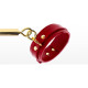 Характеристики: Матеріал - штучна шкіра, поліуретан, метал без вмісту нікелю Довжина розпірки - від 60 до 104 см Колір - золотавий Колір манжет - червоний