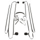 У комплект входять 2 довгі ремені, 1 поясний ремінь і 4 манжети (наручники та манжети на щиколотку).