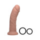 Цей реалістичний фалоімітатор Seducer з ременем ідеально підходить для прекрасного пеггинга. Нехай ваш партнер повною мірою насолодиться глибоким проникненням і випробуватиме на собі, як це бути взятим під контроль. Цей фалоімітатор має гнучкий стрижень з прожилками і зроблений з м'якого силікону, тому відчуття дуже природне. У нижній частині фалоімітатора знаходиться присоска, яку можна прикріпити до будь-якої гладкої поверхні. Таким чином, ви також можете насолоджуватися соло. Трусики виготовлені зі 100% веганського матеріалу та зручні у носінні. Обхват становить 160 см, і ви можете легко налаштувати трусики по фігурі. Ви зможете дуже легко помістити фалоімітатор у трусики, а за допомогою 2 різних кілець (діаметром 3,00 та 3,8 см) ви також можете вибрати другий фалоімітатор. Цей набір із 4 предметів пропонує безліч варіантів для ще більшого задоволення та задоволення. Використовуйте мастило на водній основі для оптимального комфорту.