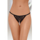 Жіночі стрінги чорного кольору виконані з якісного ніжного мережива в квітковий малюнок з пікантним розрізом хвилястої форми. Гумка оброблена тонкою тасьмою.