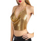 Розкішний топ, створений з майстерно підігнаних один до одного міні-пластин, підкреслить вашу сексуальність. М'який золотистий колір підкреслює красу шкіри і відтінює засмагу, а драпірування на грудях створює декольте, що інтригує. Відкрита спинка з тонким ланцюжком особливо хвилює!