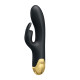 Стильний вібратор в чорному кольорі з декоративною золотистою вставкою на рукоятці. Створений з високоякісного силіконового матеріалу, що не викликає алергії. Володіє ергономічним, злегка вигнутим стволом для стимуляції точки "G" і кліторним відростком у вигляді кролика з ніжними вушками. Оснащений 7 різними варіантами вібрації, які регулюються на корпусі кнопками. Довжина - 19,2 см, діаметр - 3,8 см.Основні характеристики Вібратор Pretty Love Royal Pleasure Double Pleasure Black