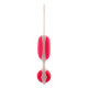 Красивые вагинальные шарики в бело-розовом цвете. Сделаны из высококачественного силикона, приятного на ощупь. Один шарик круглой формы, другой - каплевидный со встроенным виброэлементом, соединены между собой сцепкой с петлей для легкого извлечения. Оснащены 10 режимами вибрации с дистанционным пультом управления. Способствуют тренировке мышц влагалища, применяются для сексуальных игр.