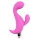 Мини вибратор для тройной стимуляции. Выполнен из 100% медицинского силикона. Подходит для стимуляции точки G, клиторальной и вагинальной стимуляции. Имеет 7 режимов вибрации. Водонепроницаемый, работает от батареек.