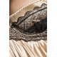 Сорочка выполнена из золотого атласа с контрастных тонов кружевным лифом и кантом. Внешняя классическая простота наряда полностью компенсируется его кроем и роскошностью женской фигуры.
